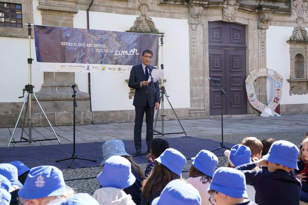 A sessão incluiu a colocação simbólica do Laço Azul na varanda dos Paços do Concelho, assinalando o compromisso do Município com a prevenção dos maus-tratos na infância. Intervieram na ocasião a Presidente da CPCJ de Guimarães, Henriqueta Fernandes, e o Vice-Presidente da Câmara Municipal, Eduardo Leite, que destacou a importância de uma atuação contínua, integrada e próxima da comunidade na promoção e proteção dos direitos das crianças e jovens.