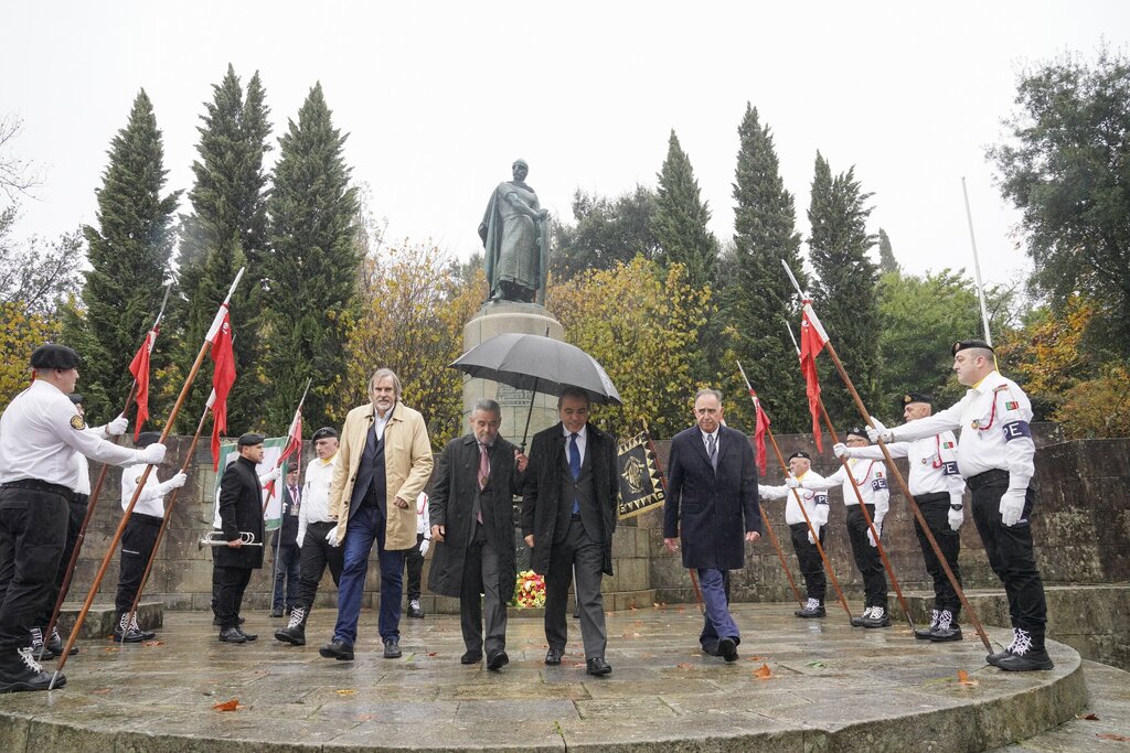 Guimarães assinalou, este sábado, dia 06 de dezembro, os 840 anos da morte de D. Afonso Henriques, rei fundador de Portugal e patrono do Exército Português, numa homenagem que reuniu autoridades civis, militares e representantes de diversas instituições vimaranenses. Perante a estátua do primeiro rei, em frente ao Paço dos Duques de Bragança, o Presidente da Câmara Municipal de Guimarães, Ricardo Araújo, rendeu homenagem, depositou uma coroa de flores e sublinhou “a responsabilidade cívica de estar à altura do legado que nasceu em Guimarães e moldou a identidade nacional”.