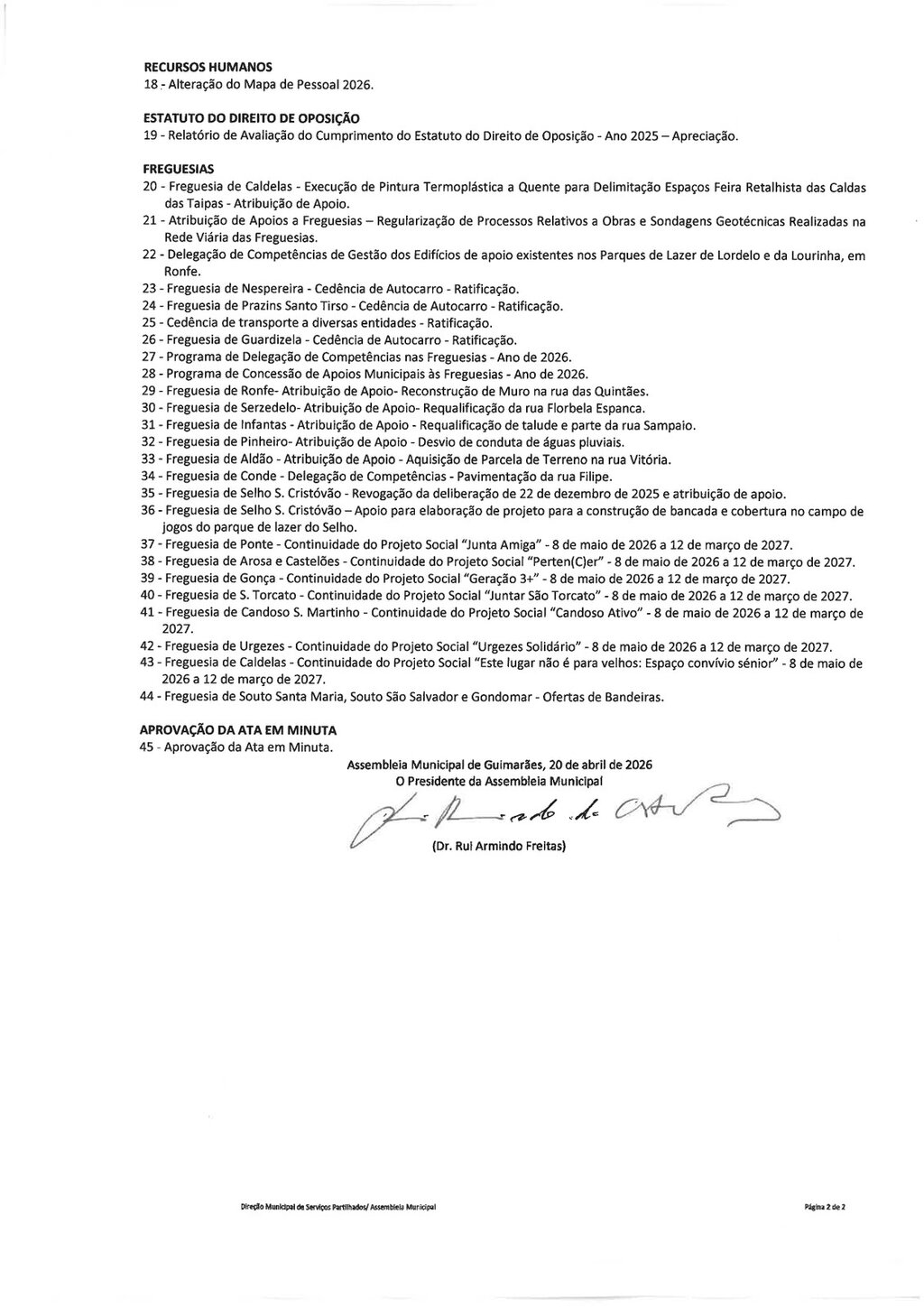 O Presidente da Assembleia Municipal de Guimarães, Dr. Rui Armindo Freitas, torna público que se realizará uma Sessão Ordinária da Assembleia Municipal no próximo dia 30 de abril, pelas 21h00, no Pequeno Auditório do Centro Cultural Vila Flor, podendo a mesma prolongar-se pelos dias úteis seguintes.
