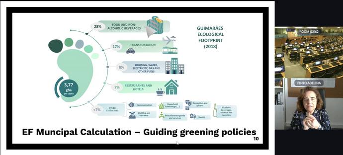 Na sessão, a Vice-Presidente do Município de Guimarães, e responsável pelo pelouro da Candidatura a Capital Verde Europeia, teve oportunidade de destacar a importância de instrumentos de monitorização que contribuam para a definição das políticas locais, assim como partilhar alguns projetos em curso, e que visam contribuir para a diminuição da pegada ecológica municipal. O Ecossistema de Governança Guimarães 2030 foi também um dos destaques, pela sua importância na criação de sinergias e no envolvimento dos cidadãos.
